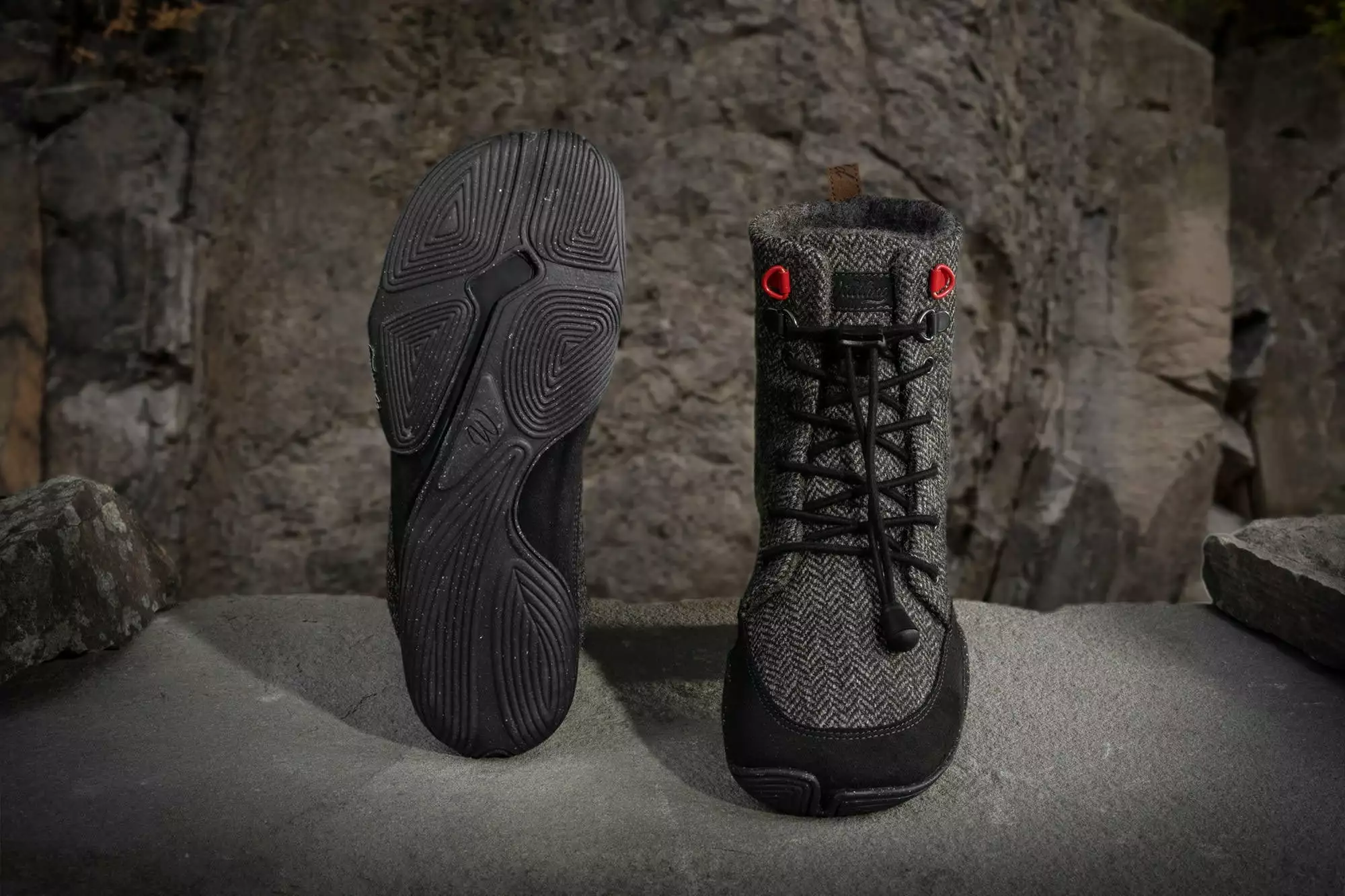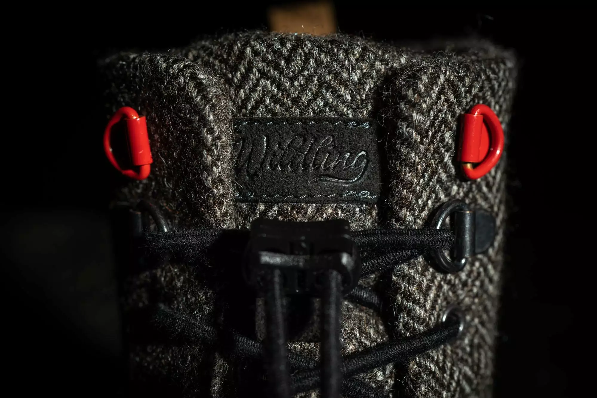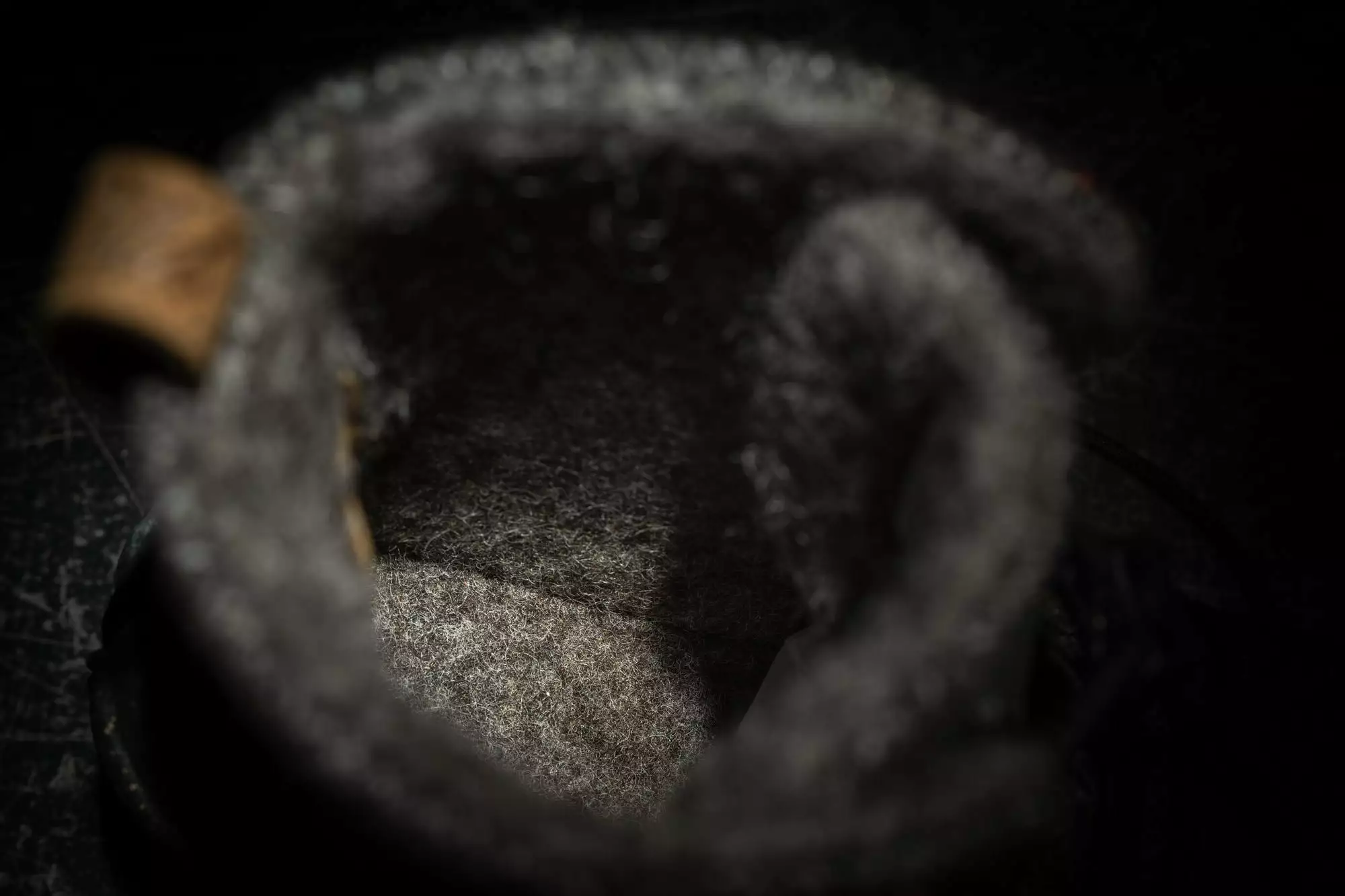 Bei diesem schlichten High Cut trifft Wolle auf Wolle und sorgt so für besonders warme Füße. Der schwarze Oberstoff mit Fischgratmuster ist aus 100 % Schurwolle von unserem Partner Nordwolle gefertigt und zeigt die natürliche Fellfarbe des Pommernschafes, dessen Wolle hierfür verwendet wurde. Das Innenfutter aus Walkloden stammt ebenfalls von Nordwolle und macht den Nordwolf zu einem rundum wärmenden, natürlich feuchtigkeitsregulierenden und wasserabweisenden Wildling.
