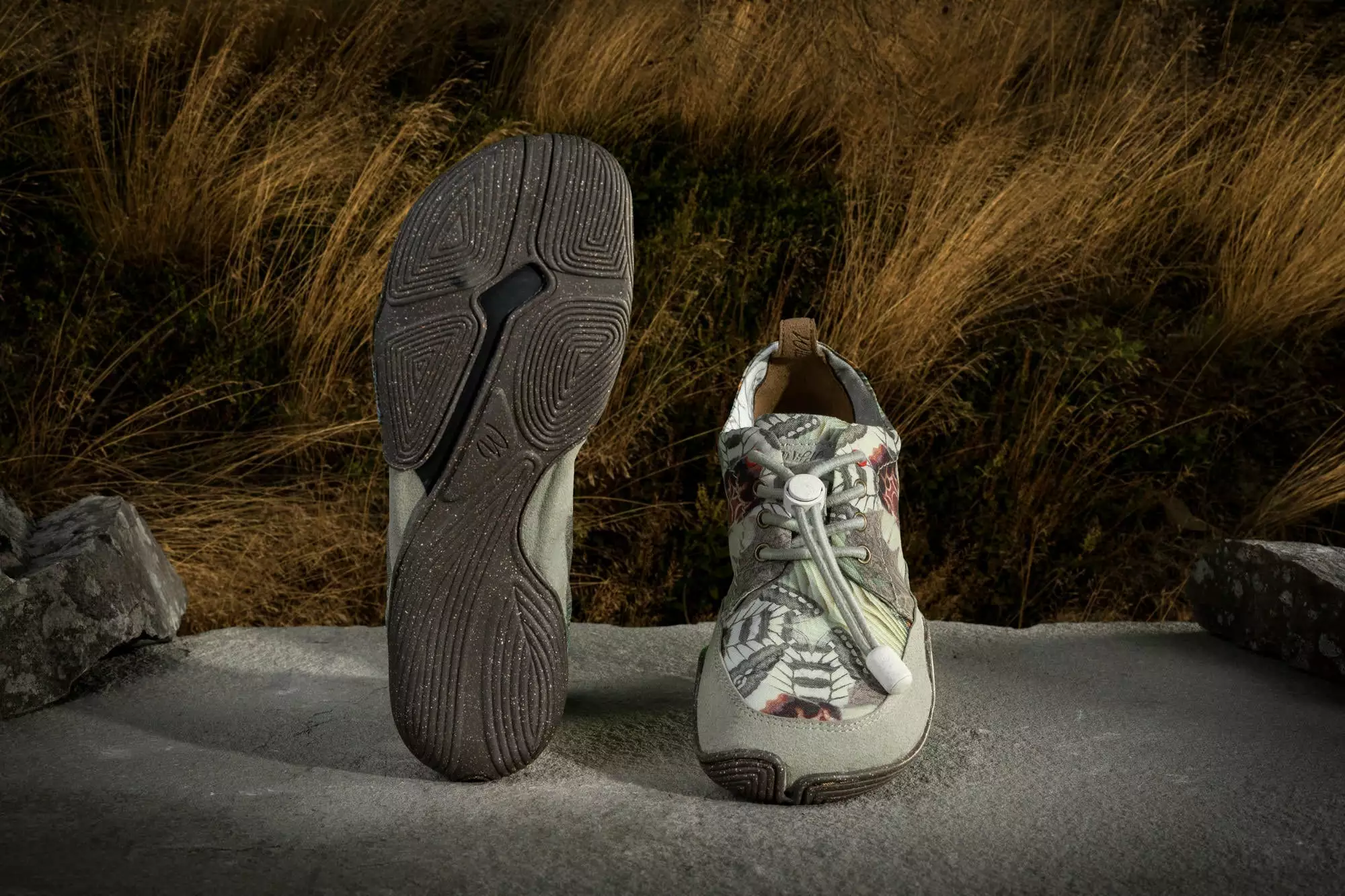 Die dünne, dunkelbraune Laufsohle dieses Low Cuts erlaubt es uns, die Naturverbundenheit selbst bei jedem Schritt zu spüren.