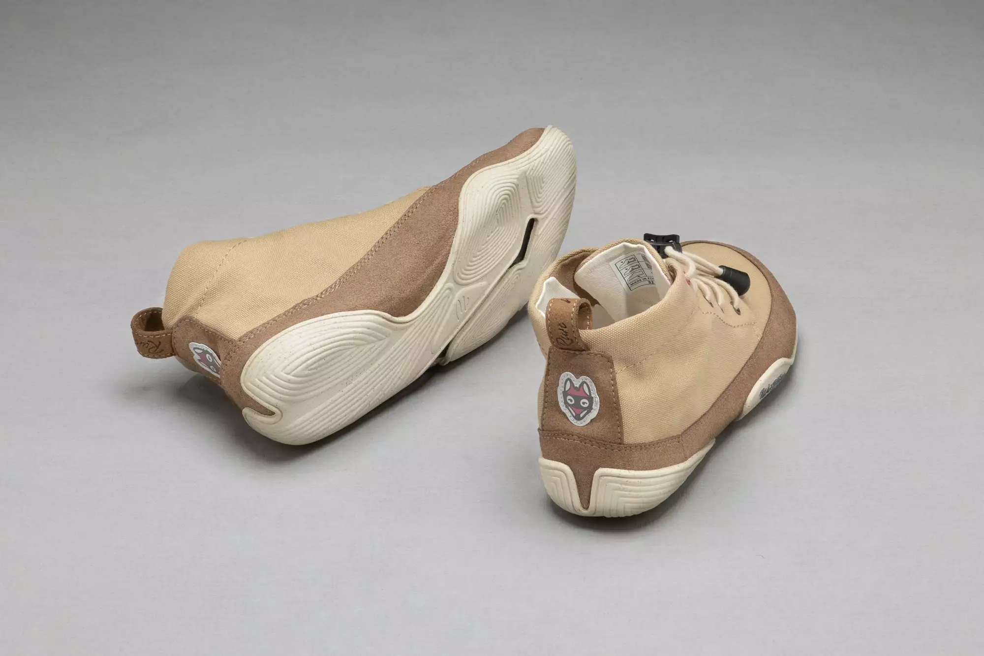 Die cremefarbenen, mit Baumwolle ummantelten, Elastiksenkel können nach Belieben gegen andersfarbige Senkel ausgetauscht werden.