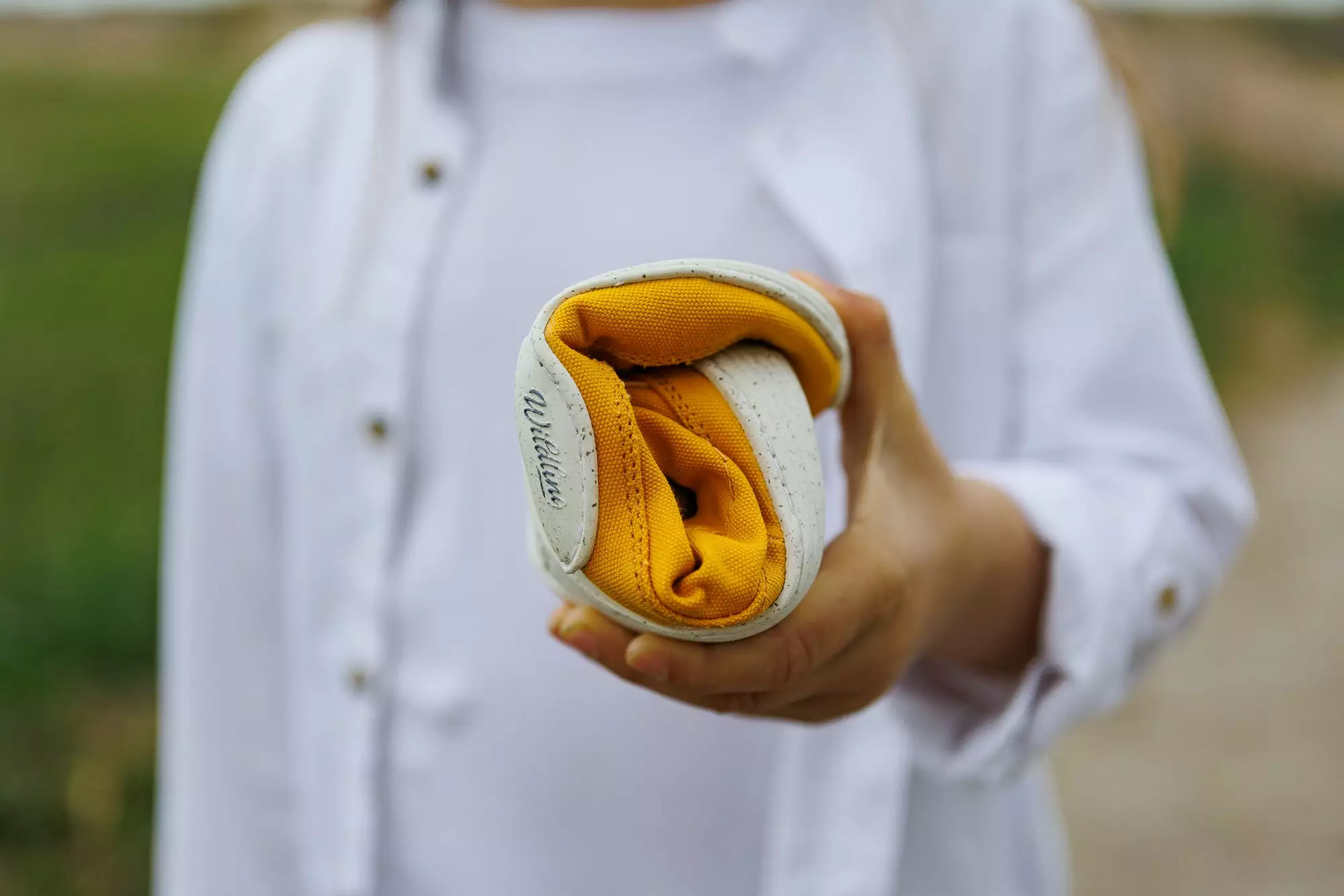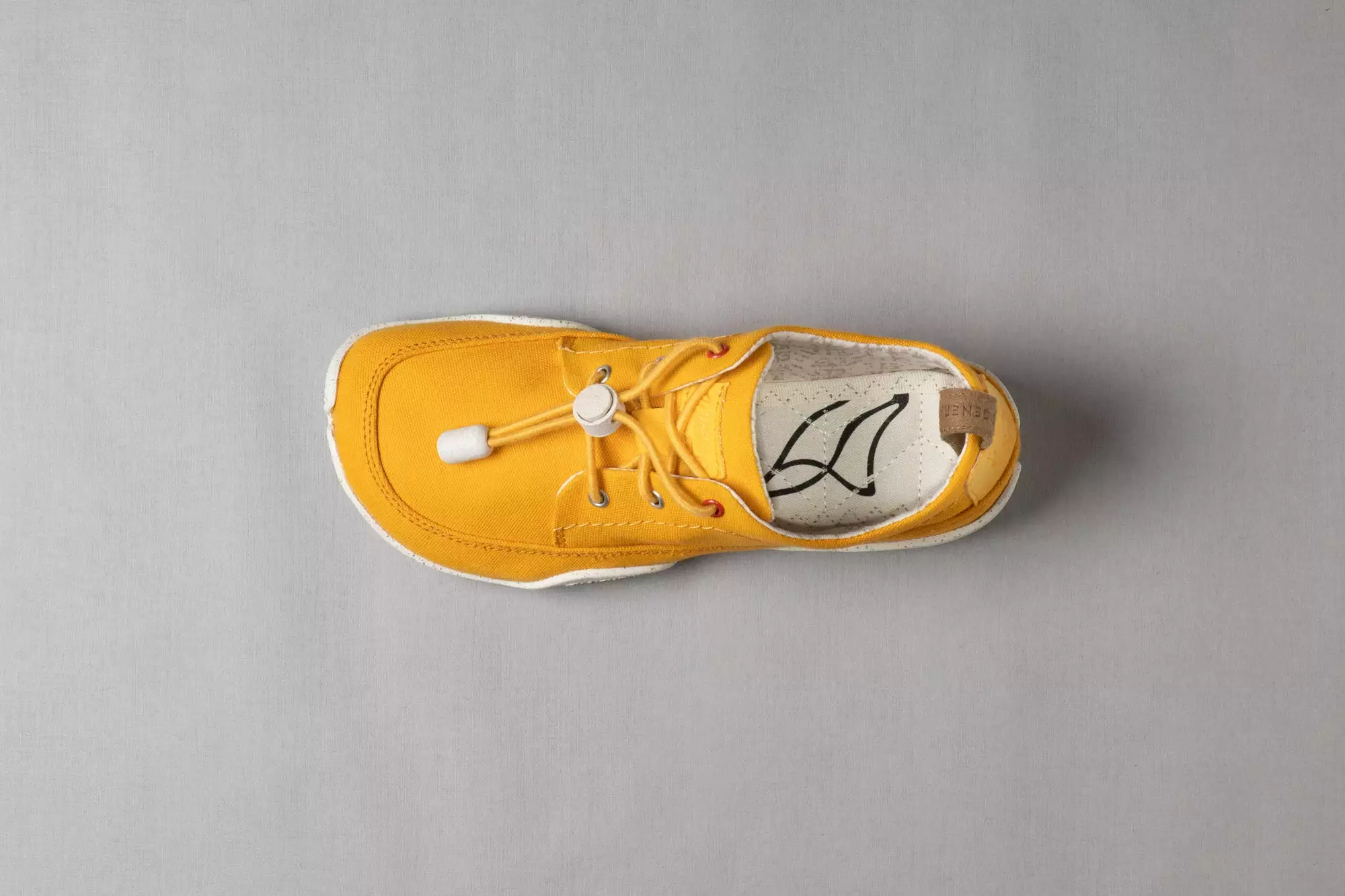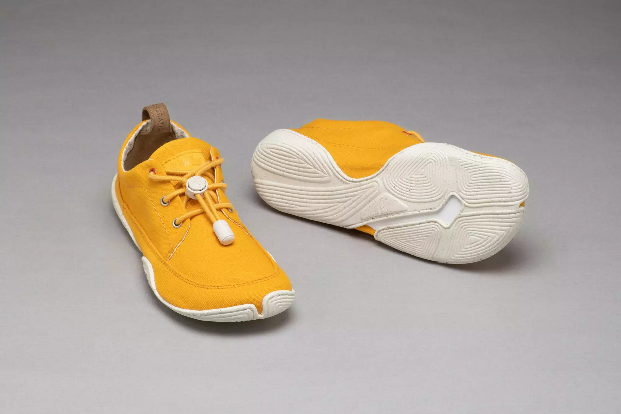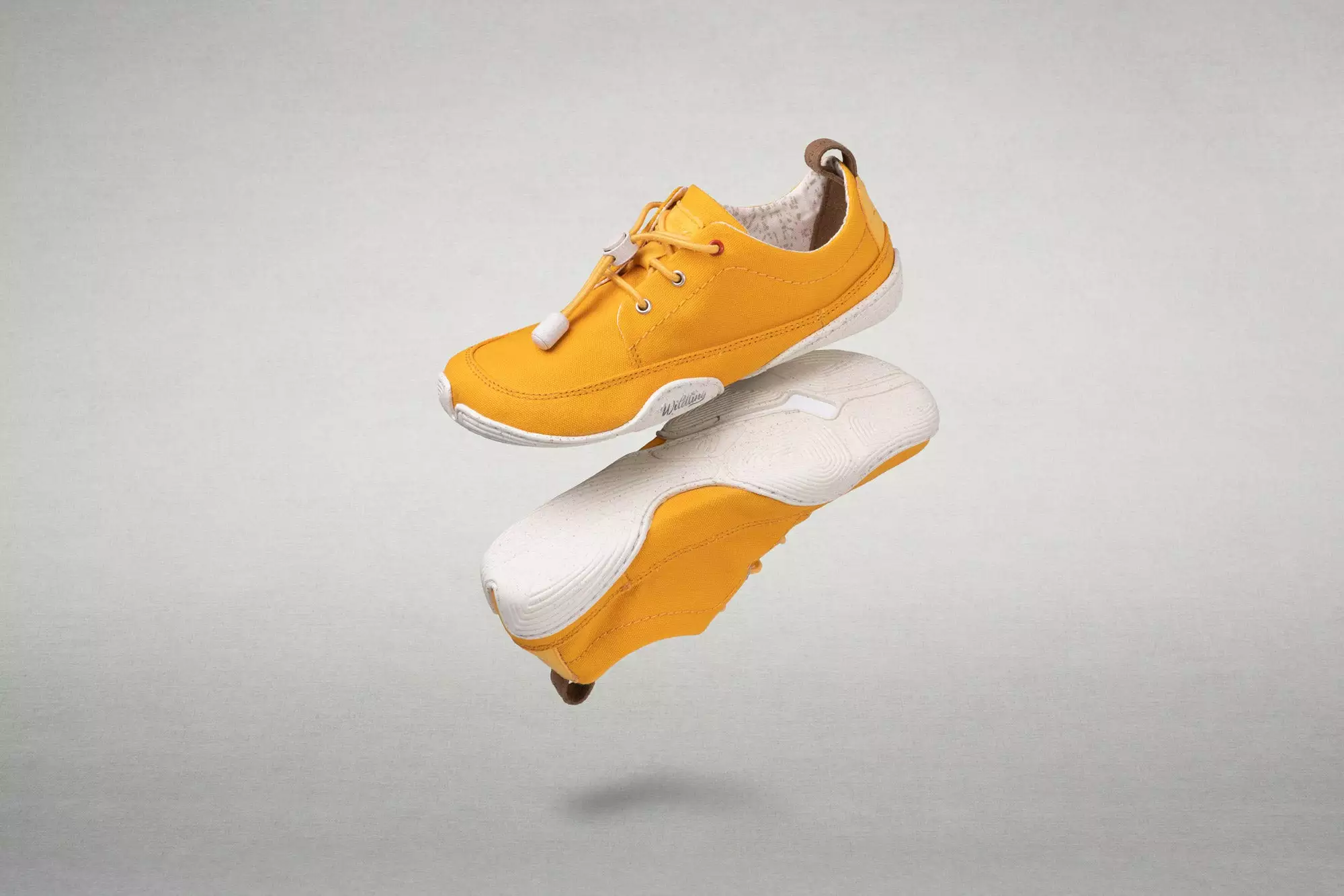 Das Obermaterial der Butterblume wird ressourcenschonend hergestellt. Der Stoff besteht zu 100 % aus recycelter Baumwolle.