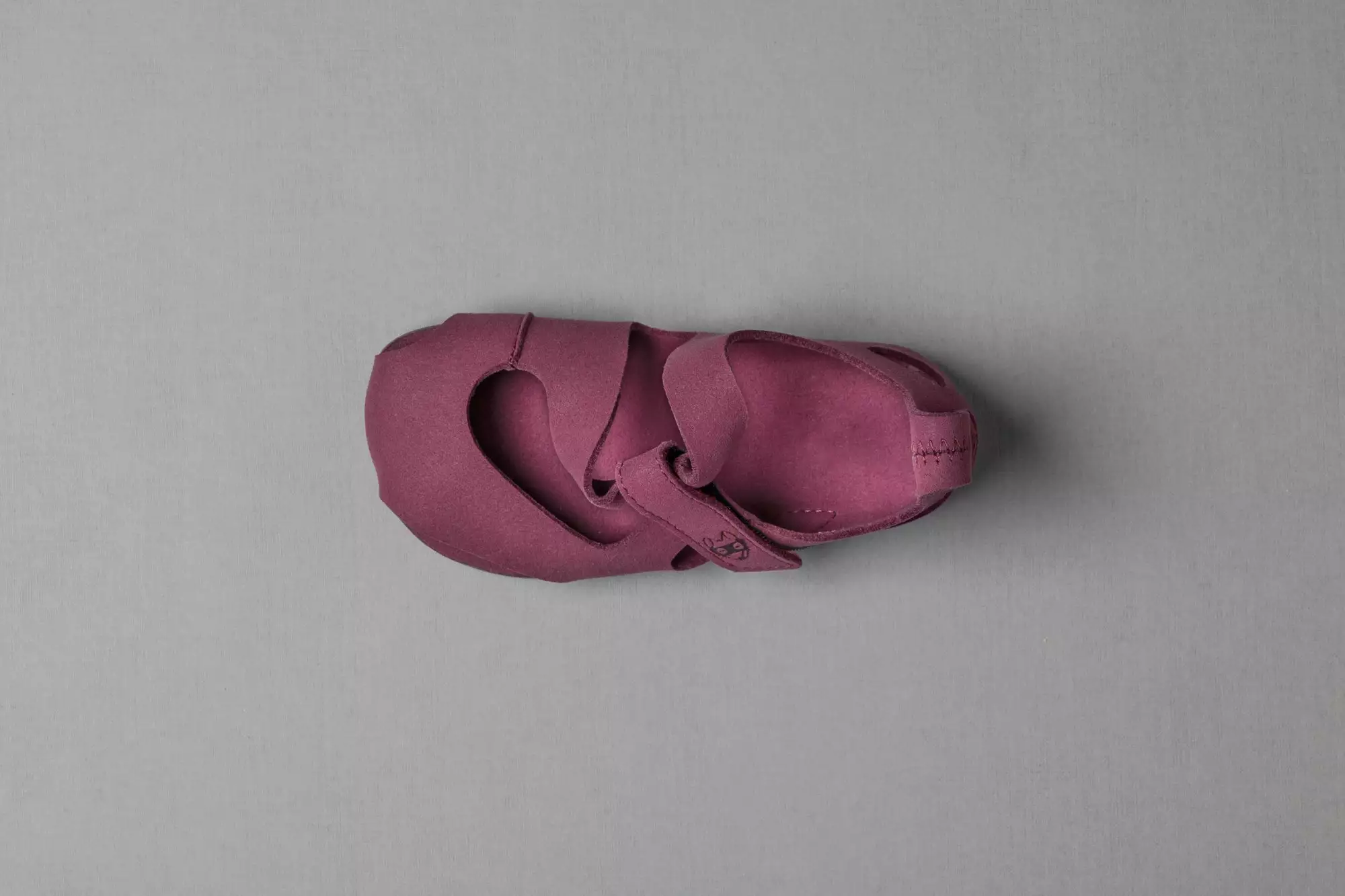 Fuß und Sandale gehen bei der Pflaumenfeder eine optimale Verbindung ein. Durch den Riemen am großen Zeh sorgt der Windlass-Mechanismus für sicheren Halt.