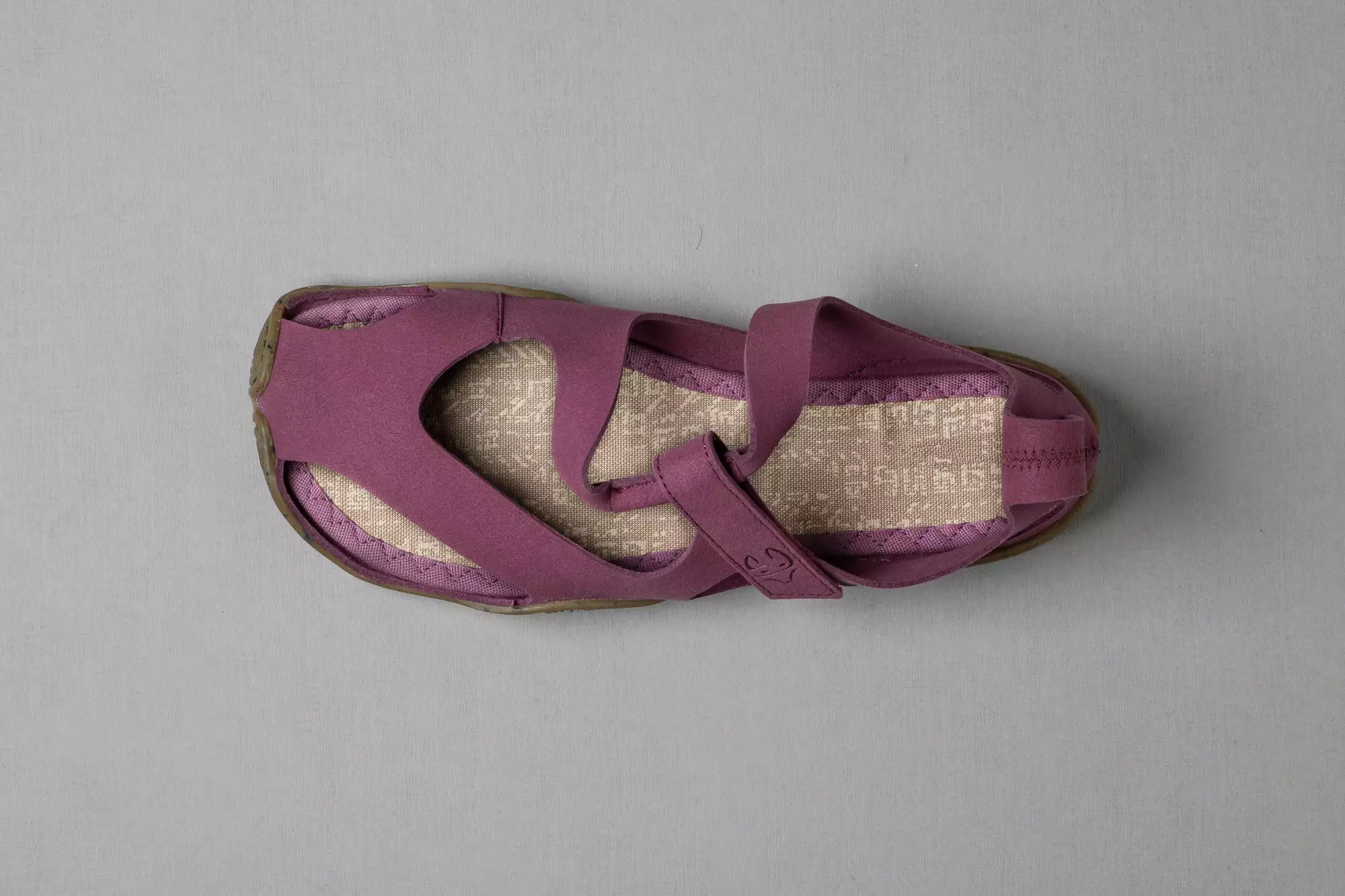 Das fuchsiafarbene Obermaterial der Pflaumenfeder besteht aus robuster Mikrofaser, die den Fuß schützt und ihm gleichzeitig so viel Bewegungsfreiheit wie möglich einräumt.