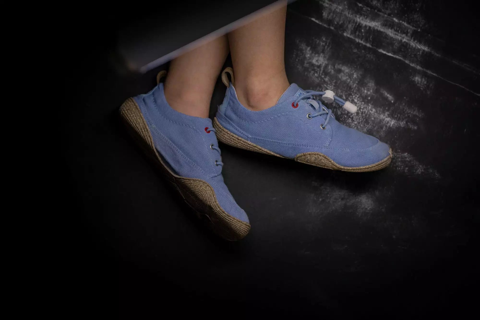 Die Materialien des himmelblauen Oberstoffes stammen aus kontrolliert biologischem Anbau. Das Leinen wird aus Europa bezogen und sorgt mit einem Anteil von 33 % zudem für ein angenehmes Fußklima.
